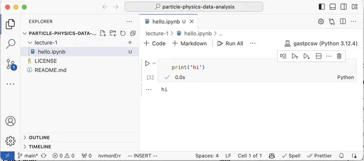 VSCodeand select from the menuFile -> Open Folder ..., then choose the folder you just created~/work/physics/tutorial.- Alternatively you can